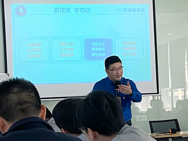 老师在培训一开始就给学员们播放了曹操赤壁之战的视频,以此来缓解整个会场中的紧张感,并通过提问和抢答激发了学员们的好胜心,将学员们的积极性调动到了顶峰。这就是老师说的"有限时间,有效训练"。
